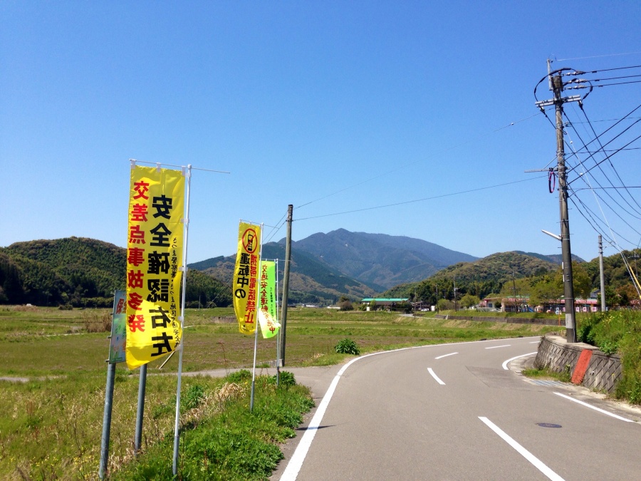 町のあちこちに交通安全旗が立っています。